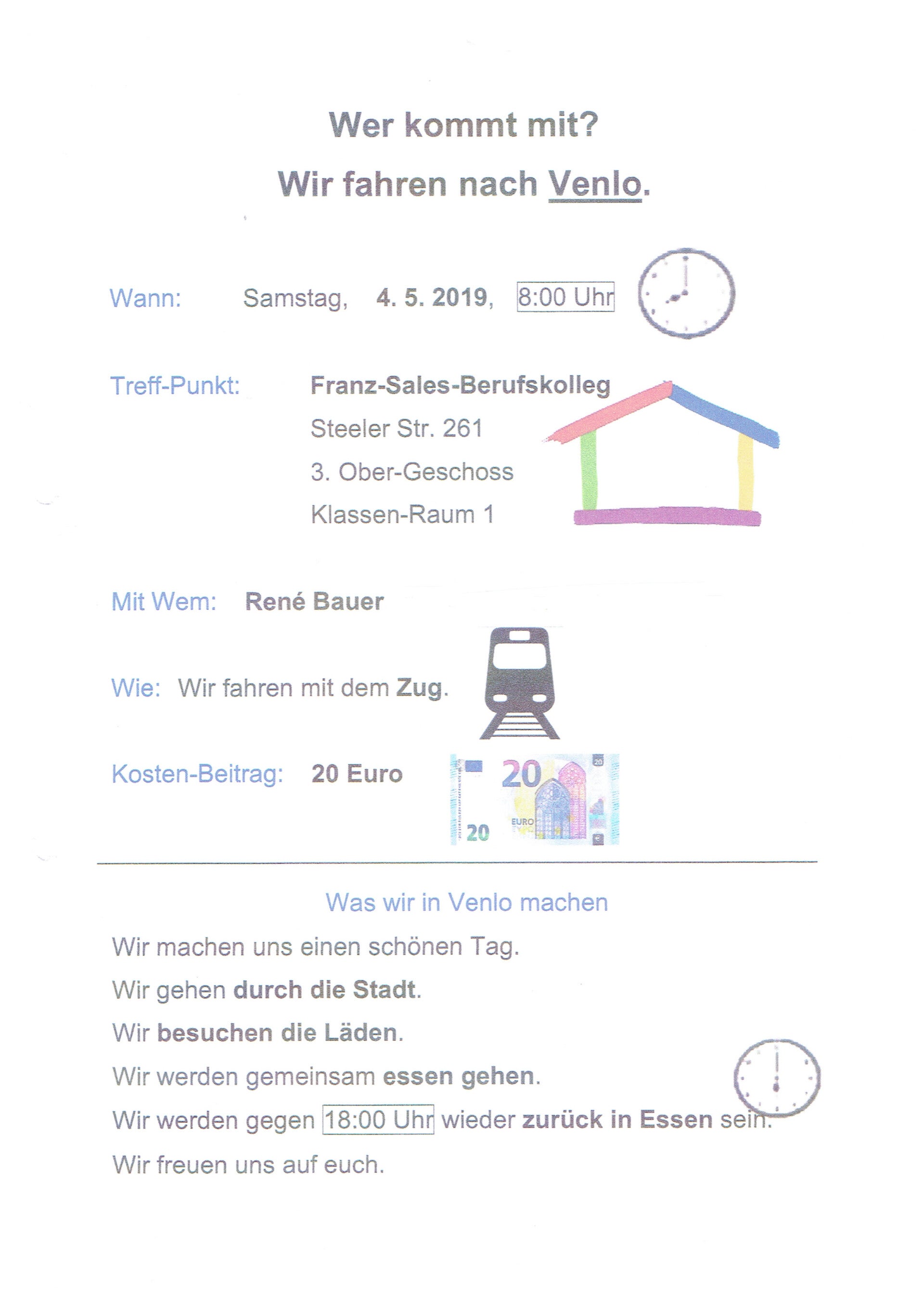 Mit Piktogrammen und leichter Sprache unterstütze ich Sie beim Wegetraining mit öffentlichen Verkehrsmitteln, damit Sie mobil und unabhängig sind.